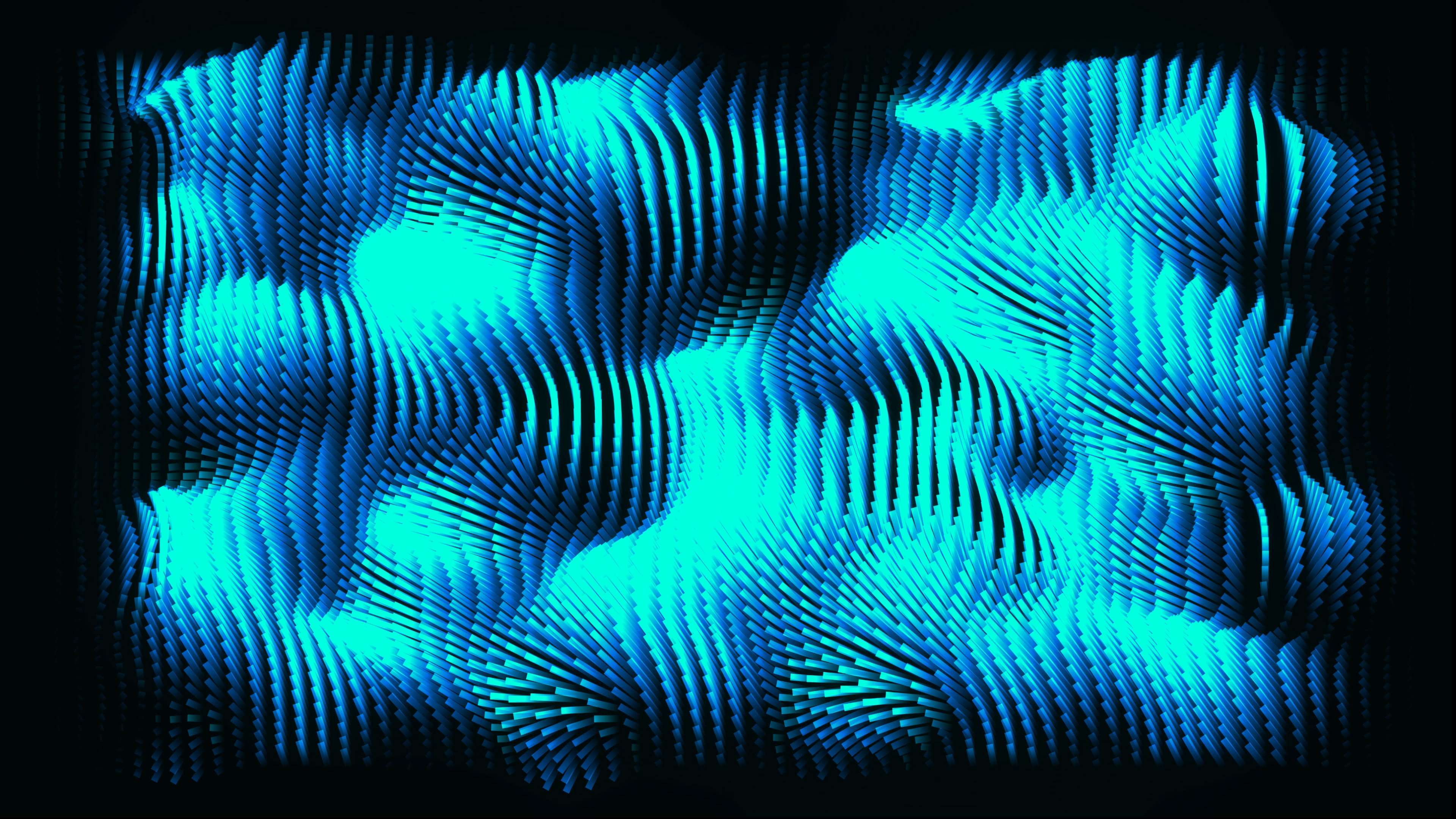 OPTICAL FLOW ist ein experimentelles Motion-Design Projekt, das sich der Erzeugung organischer, fließender Bewegungen aus einer Vielzahl regelgeometrischer Objekte widmet. Als Grundlage dient die Theorie des optischen Flusses, welcher vereinfacht beschrieben die Bewegungsrichtung und Geschwindigkeit von Bildpunkten in Videodaten durch eine 2D-Vektormatrix beschreibt. Diese Matrix dient zur generativen Erzeugung der Animationen. Hauptfokus ist die Wirkung von Licht und Schatten, sowie physische Interaktion.