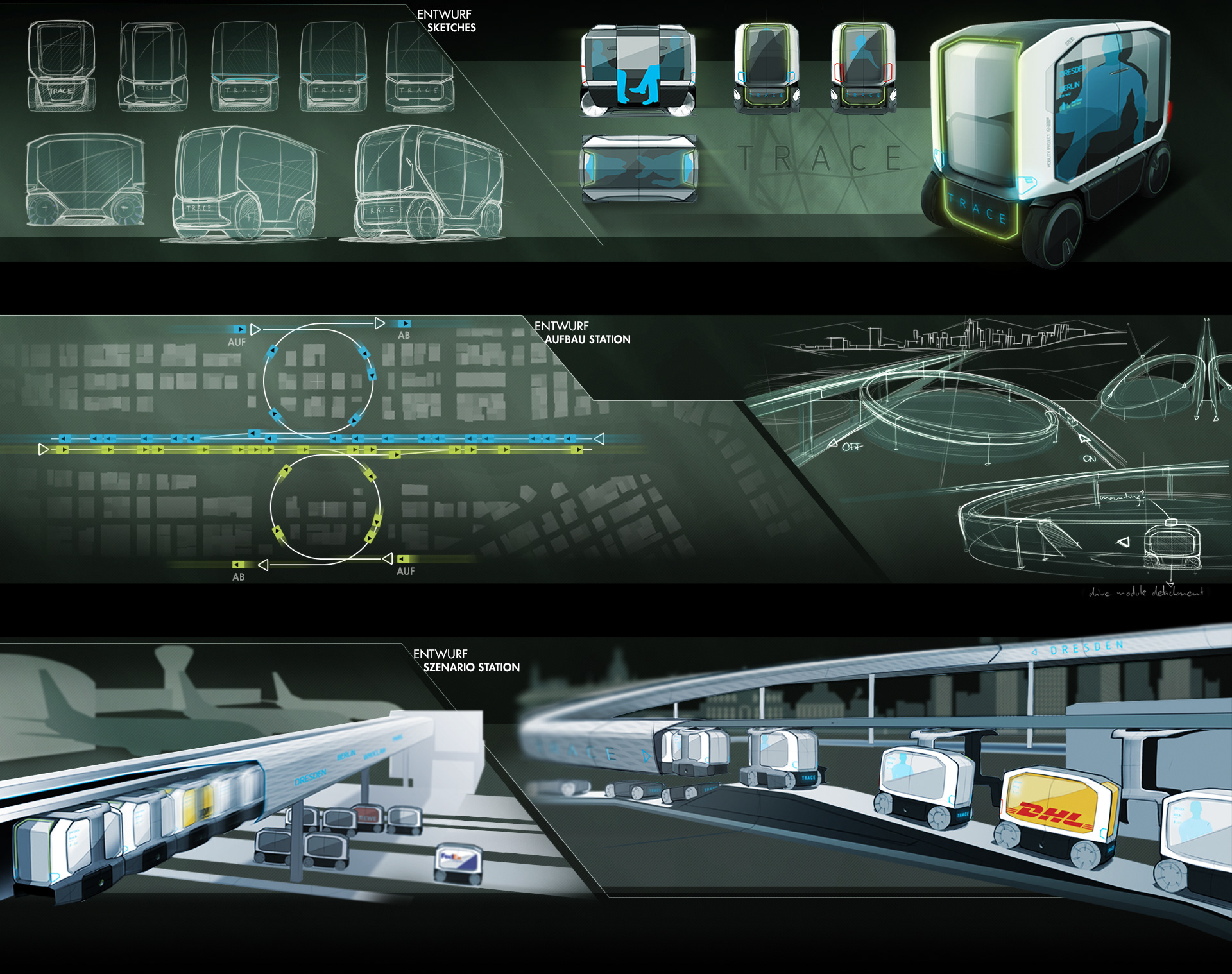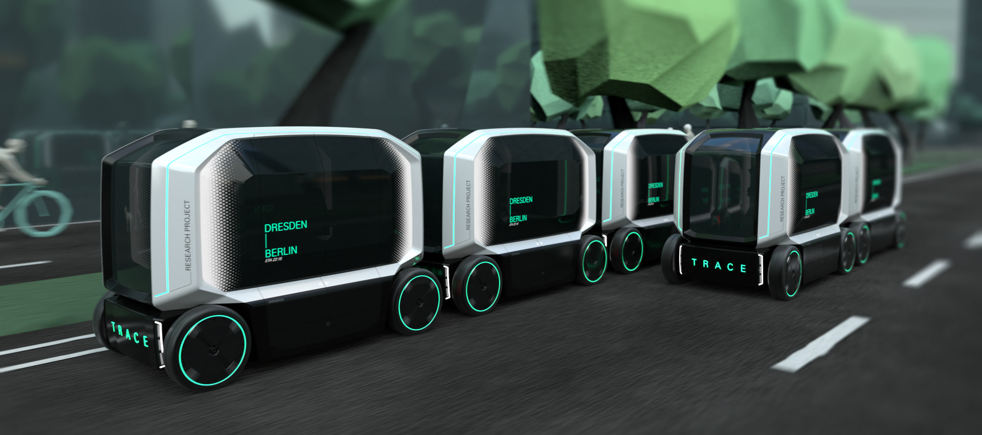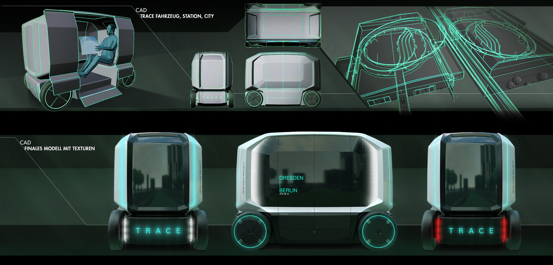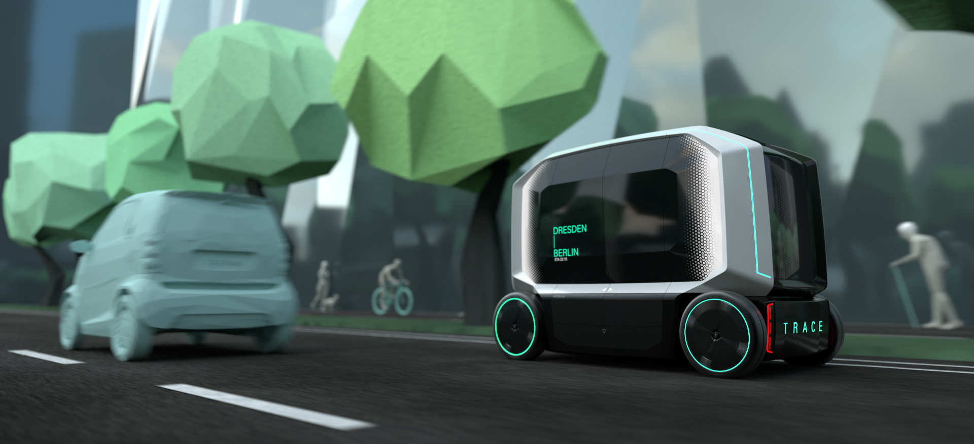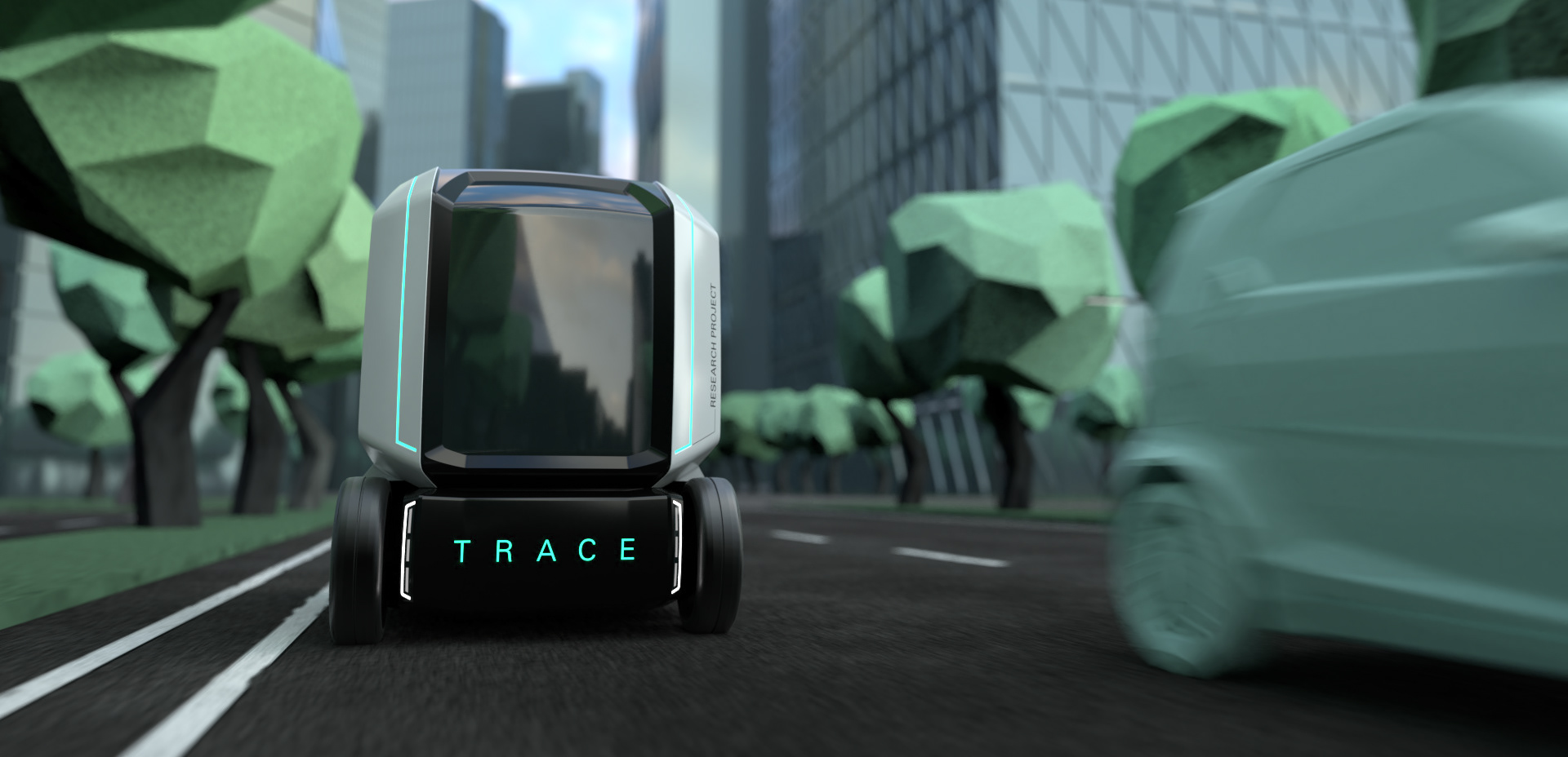 Der Entwurf des TRACE-Fahrzeugs basiert auf extrem kompakten Maßen, es ist damit nicht größer als ein aktueller Smart. 1,5 Sitzplätze reichen für die meißten Anforderungen in der Stadt aus, z.B. Fahrt zur Arbeit, zum Einkauf, Elternteil mit Kind. Dazu kann das autonome Fahrzeug auch als reine Transportbox genutzt werden.