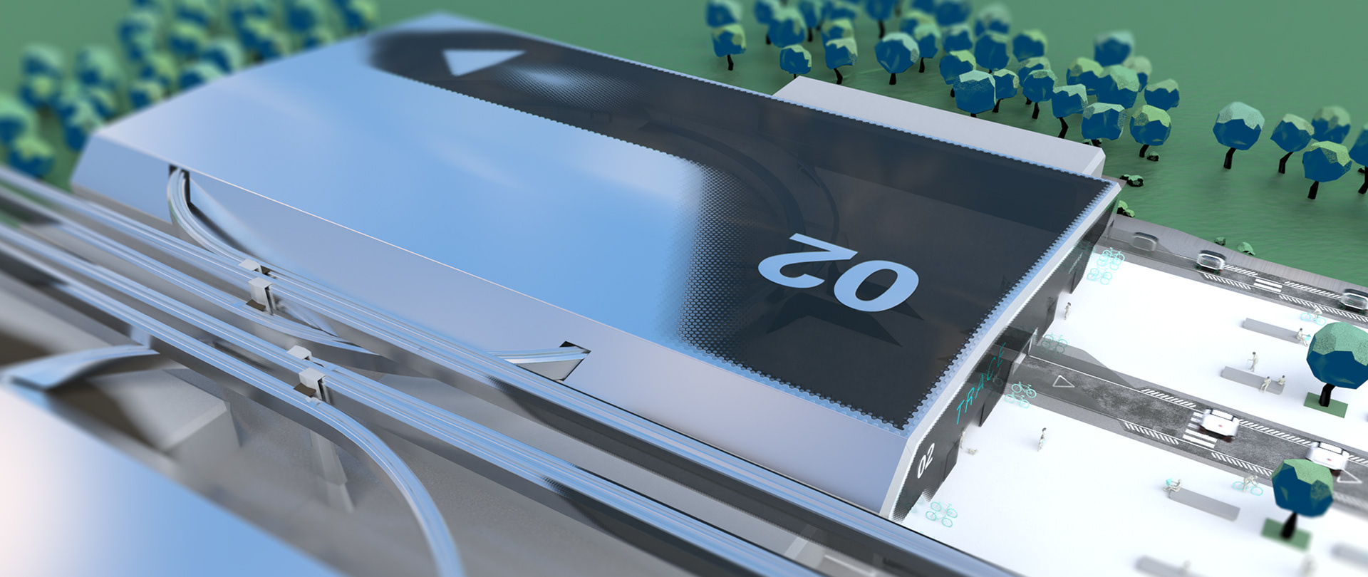 Für die Überlandfahrten wird die Fahrgastzelle an dafür vorgesehenen Stationen von der autonom fahrenden Antriebsbasis abgekoppelt und in eine Highspeed-Schwebebahn eingegliedert. Die Auf- und Abfahrt erfolgt hierbei im Gegensatz zur Bahn nahtlos.